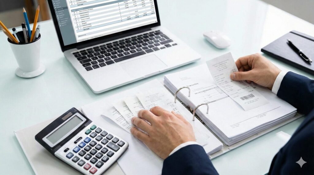 - 領収書・レシートの整理と入力: 経費として支払った証憑(しょうひょう)を日付順に整理し、会計ソフトに記録します。
